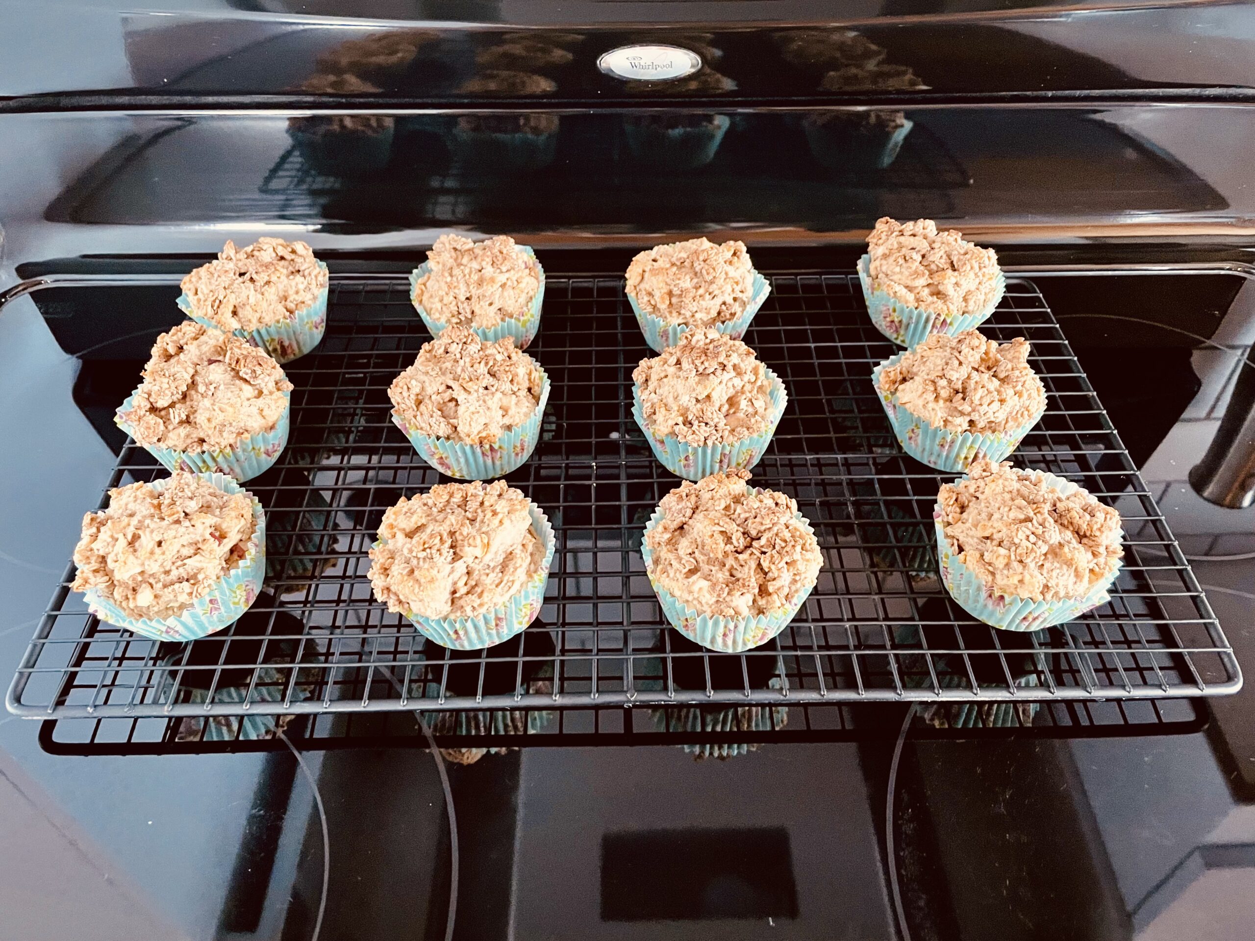 - Faire la garniture en mélangeant tous les ingrédients et saupoudrer le mélange sur chaque muffin.